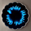 infinity mirror made from plexi and glass, neon el-wire, wood frame, diameter 76cm