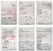 rice kernels, ink, gold paint, gold leaf, clear mylar, 13x9x0.5cm each