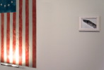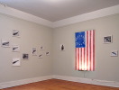 reased cotton flag (various versions), audio loop of children reciting the Pledge of Allegiance with the words 'under God' removed, framed photographs