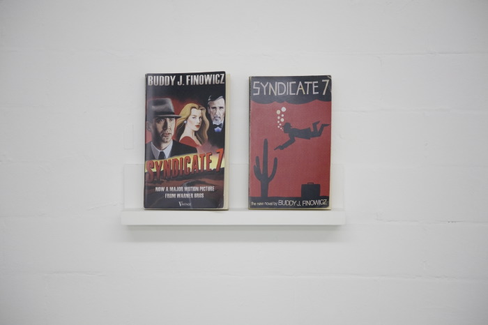 Matthew Breen explores the aesthetics of Buddy J. Finowicz’s novels, without ever exposing the contents of the books themselves; in fact the text is extraneous to the understanding of the project. The pastiched and utterly believable covers compress all the styles of 20th century cover art within the output of a single writer. We even find a poster for the film adaptation of Buddy’s book, Syndicate 7, starring Nicolas Cage. But who remembers the book, or indeed, the film? The written component of Buddy’s work has been removed, or perhaps it never existed in the first place. Breen says that the work was inspired by his own attempt at writing a piece of pulp fiction, but to really understand how these fictions could be created, he had to immerse himself in the aesthetic and mythology that surrounded American counter culture. This archive, like Zoe Leonard’s Fae Richards Photo Archive, or Jamie Shovlin’s Lustfaust, will expand through Breen’s research. Perhaps the only parts of Buddy’s life we will never get to see are the stories themselves.