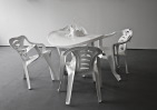 These artistic narratives are based on the overbearing here and now. Spilling out of context, the artists produce hallucinatory newspaper headlines, trash baroque icons, surreal minefields and post-apocalyptic barbecues. Faced with this fracture of the Real, we are as viewers released from the circumstantial, and are drawn into a world of the unconscious artistic gesture.